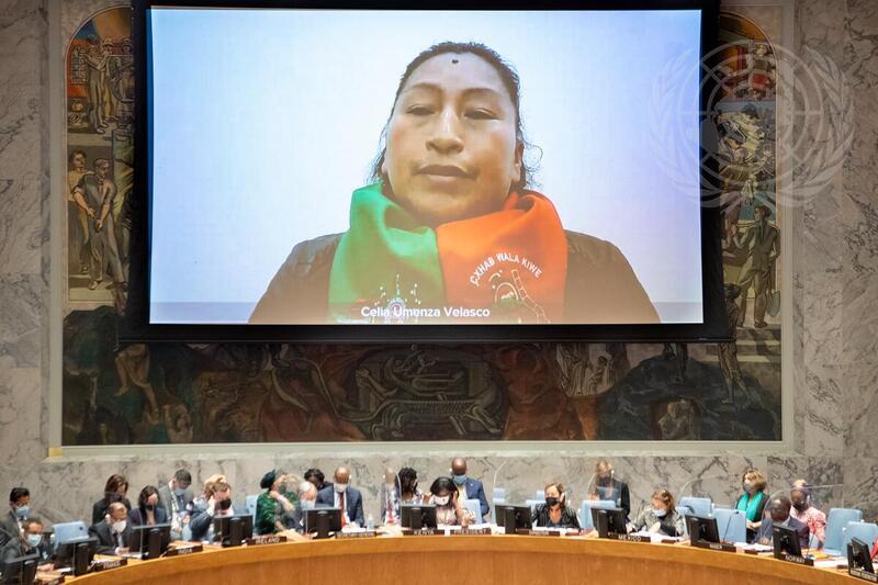 On 21 October 2021, led by the Kenyan presidency, the UN Security Council (UNSC) held its annual Open Debate on Women, Peace and Security under the theme “Investing in Women in Peacekeeping and Peacebuilding”. Celia Umenza Velasco, member of Cxhab Wala Kiwe, Association of Councils of the North of Cauca, spoke as the civil society briefer on behalf of the NGO Working Group on Women, Peace and Security. She briefed the Council about the rising violence against human rights and land defenders in Colombia, including against Indigenous leaders who are targeted for challenging powerful economic interests and opposing damaging extractive and infrastructure projects on their territories.